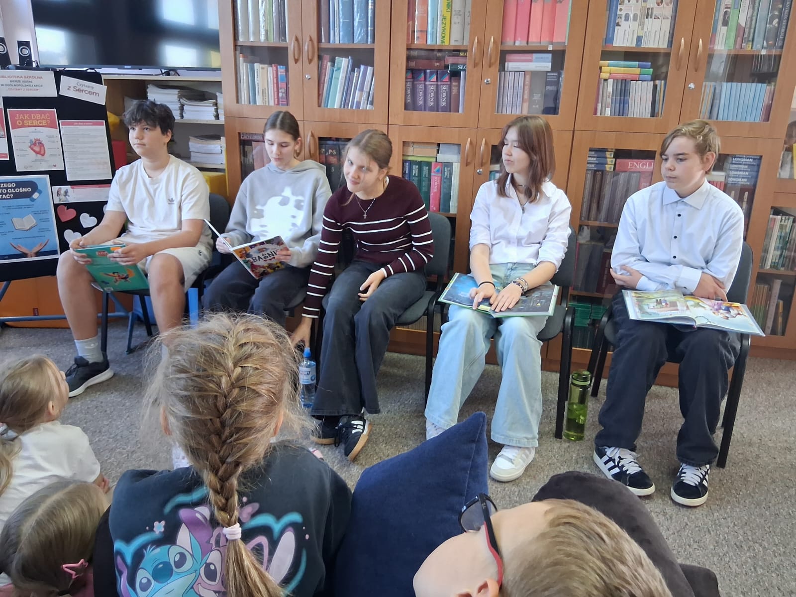 Biblioteka zorganizowała Ogólnopolski Dzień Głośnego Czytania, który obchodzimy rokrocznie 29 września. Akcję przygotowali uczniowie z klasy 8D, należący do Szkolnego Koła Przyjaciół Biblioteki.