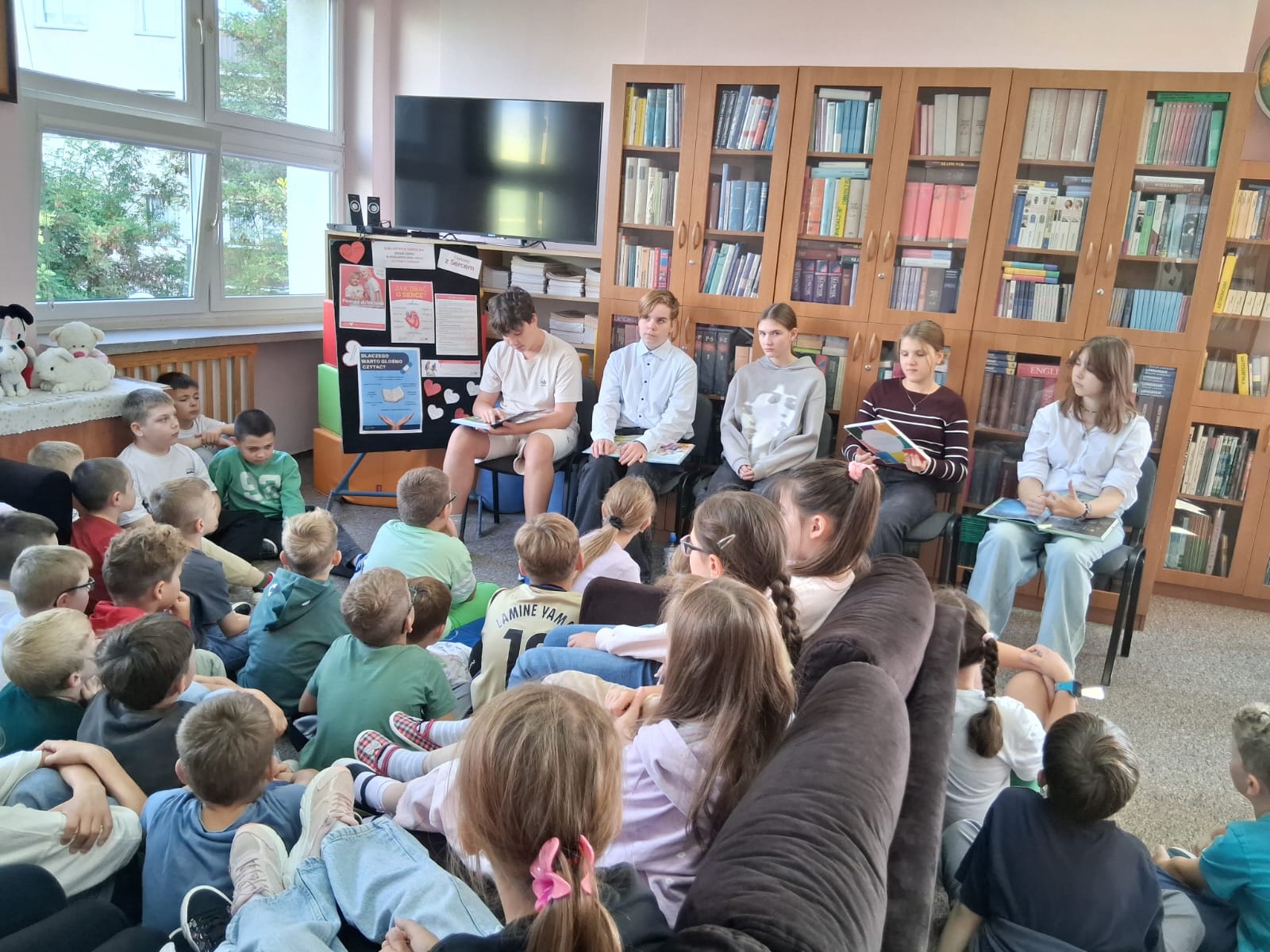 Spotkanie miało na celu promowanie czytelnictwa wśród najmłodszych. Sesja czytelnicza skierowana była do wszystkich uczniów klas pierwszych. Nauczycieli biblioteki dziękują uczniom i wychowawcą za spotkanie.