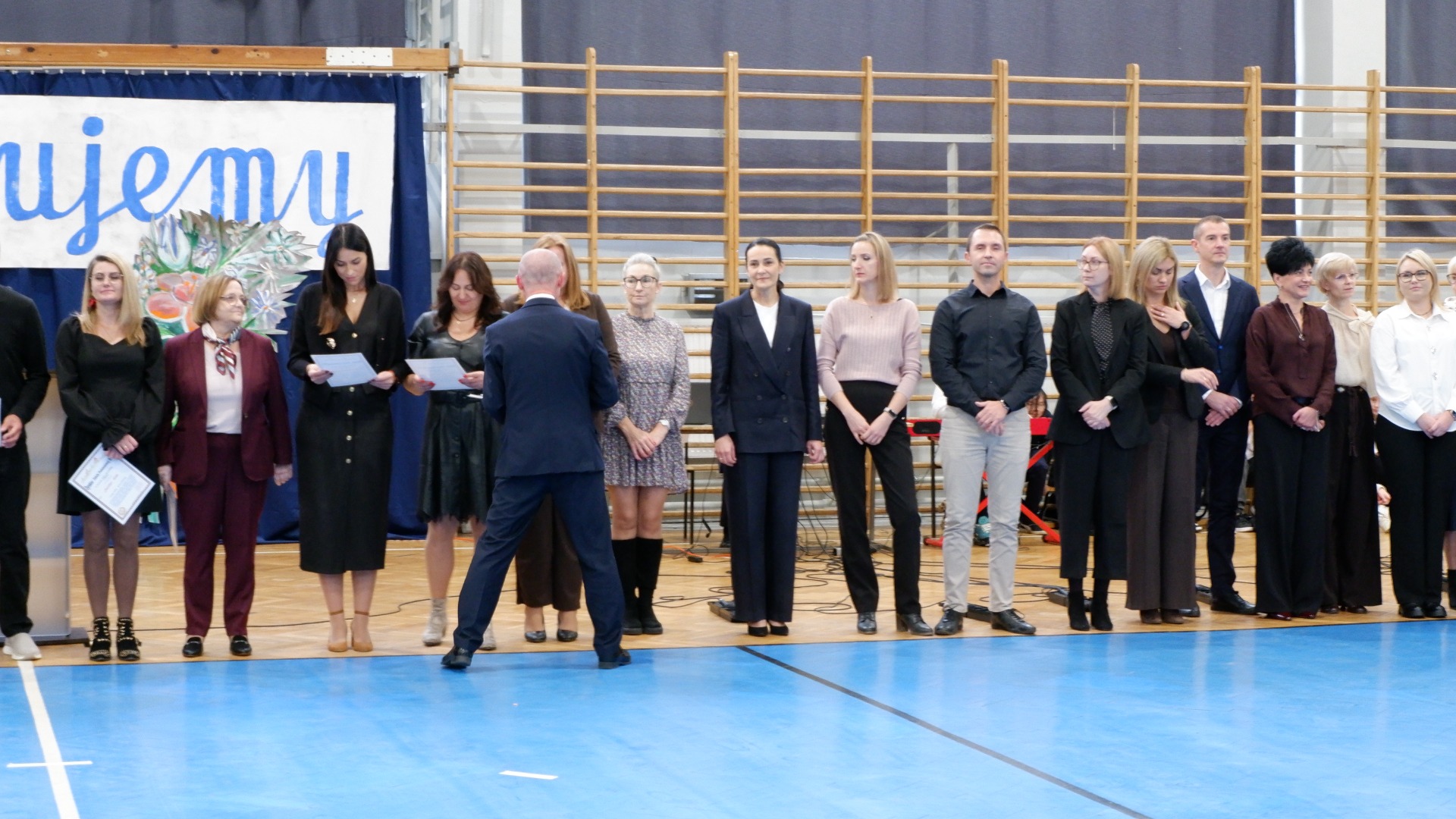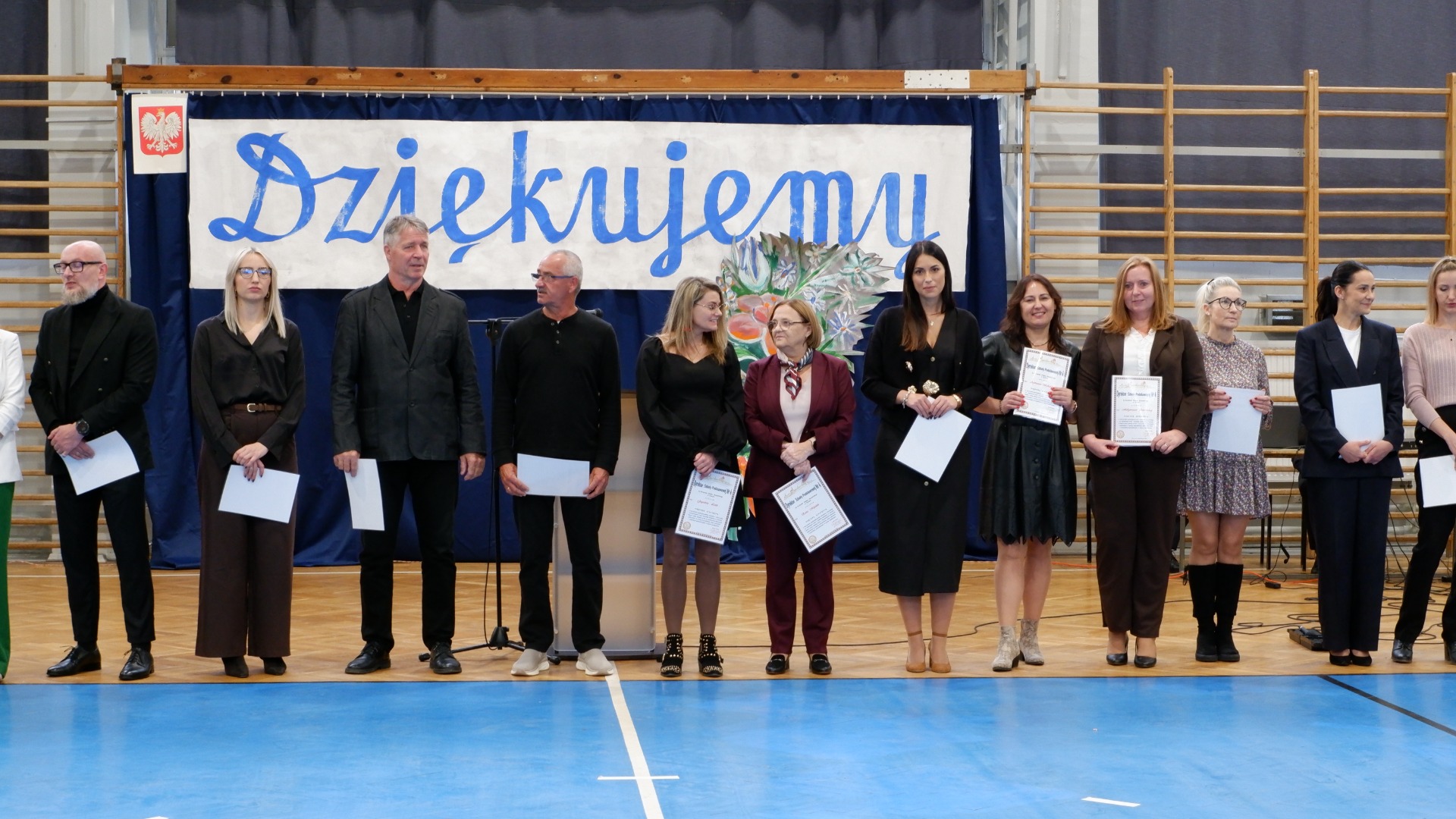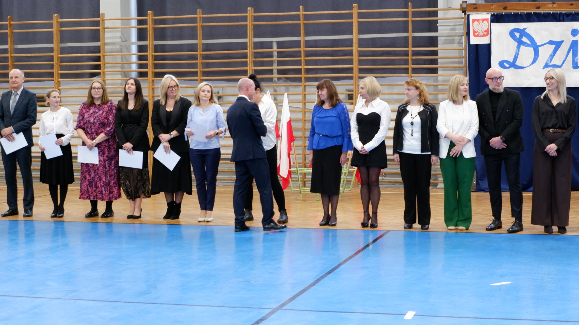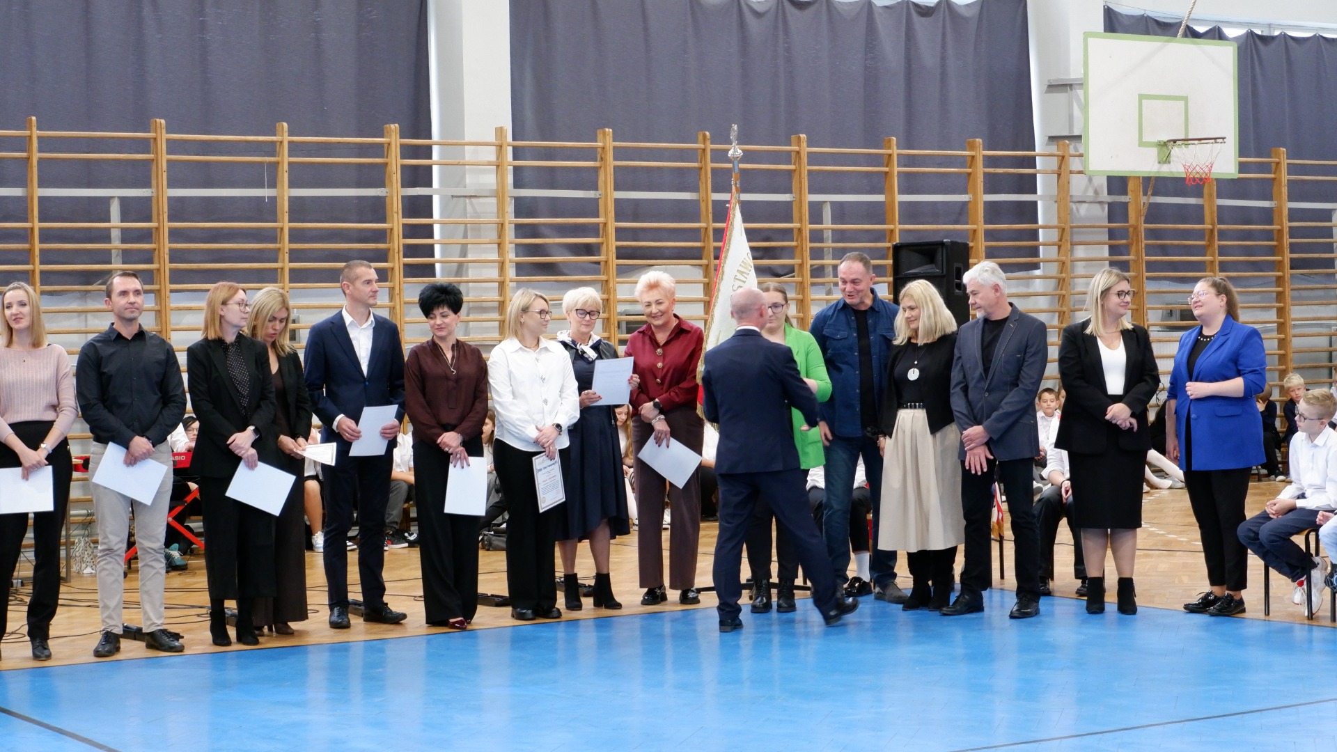 Podczas apelu Dyrektor Szkoły Podstawowej nr 4 w Tczewie wręczył nagrody dla nauczycieli, doceniając ich osiągnięcia dydaktyczne, wychowawcze i opiekuńcze, a także wkład w rozwój szkoły.