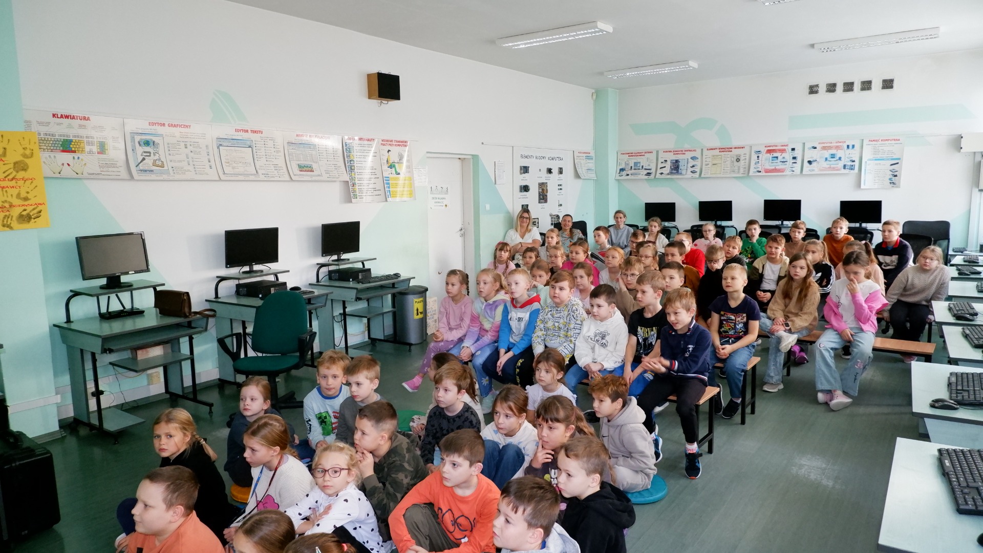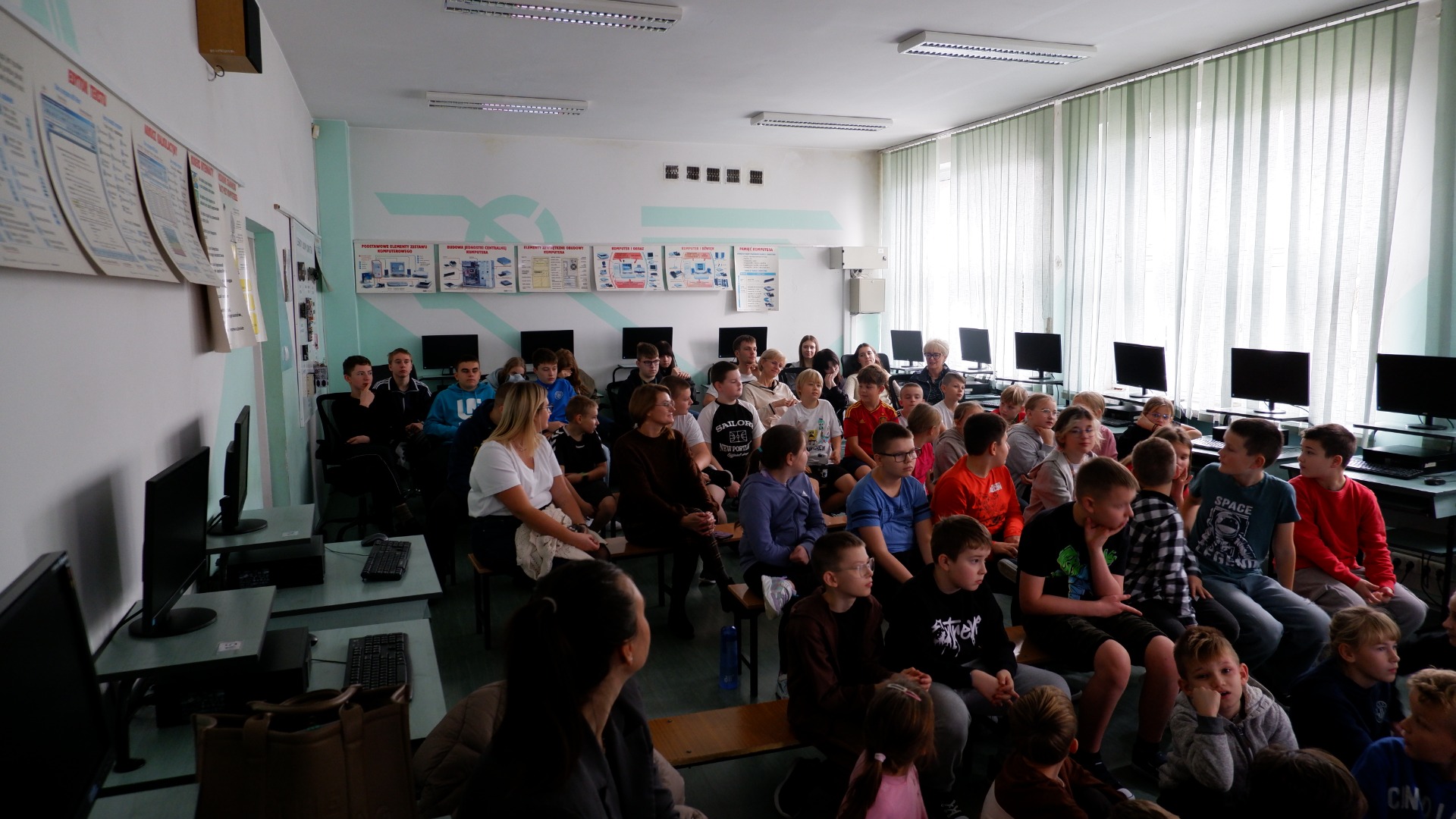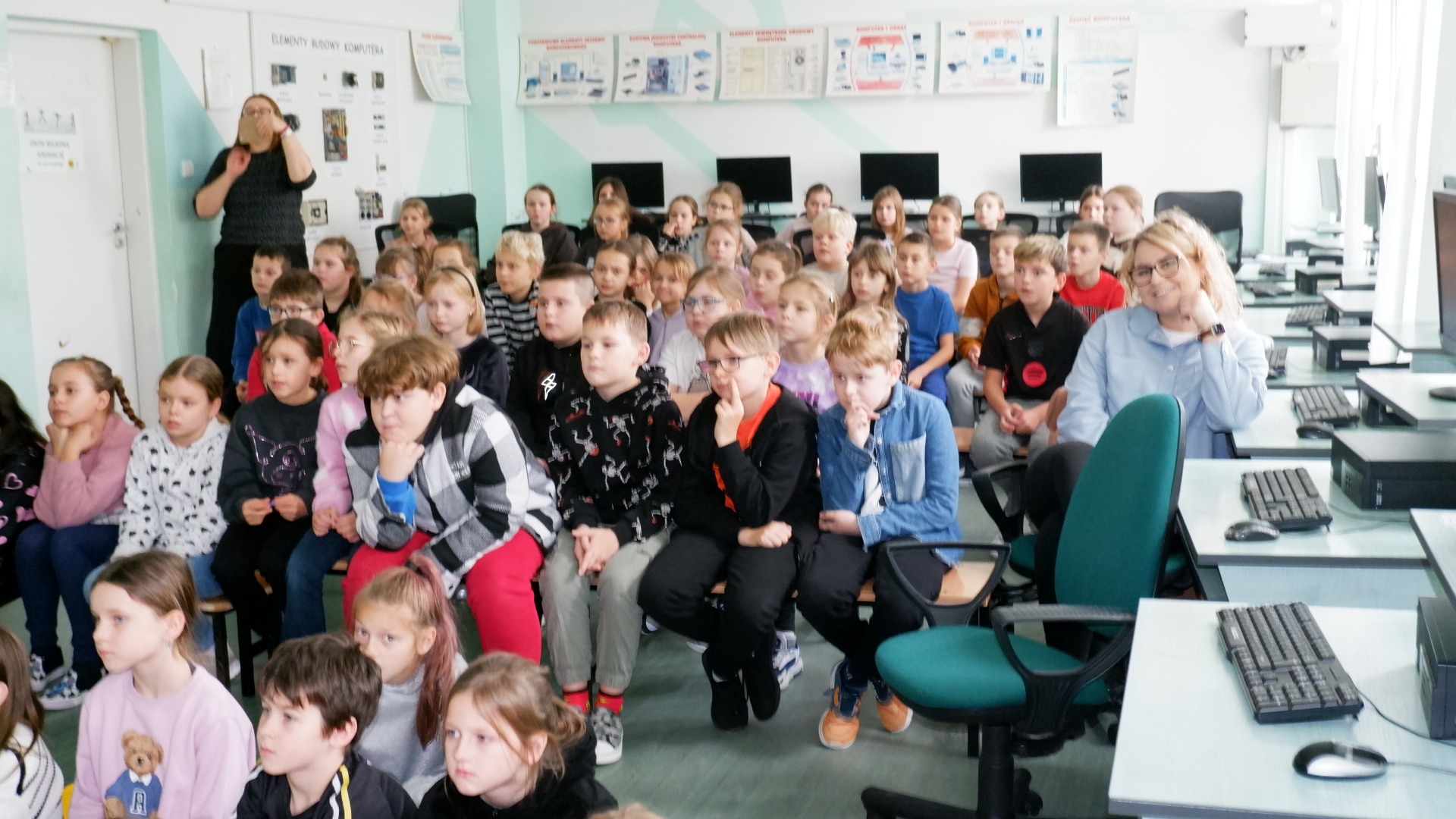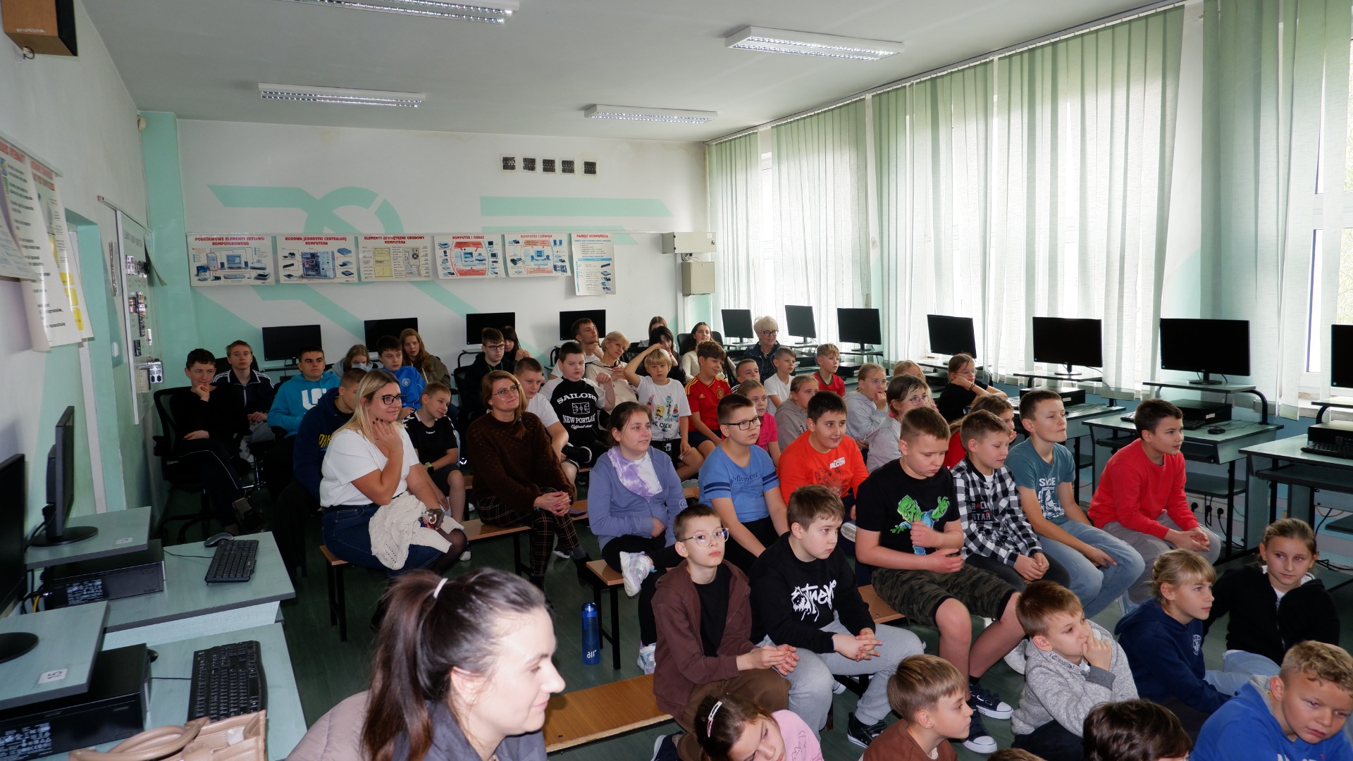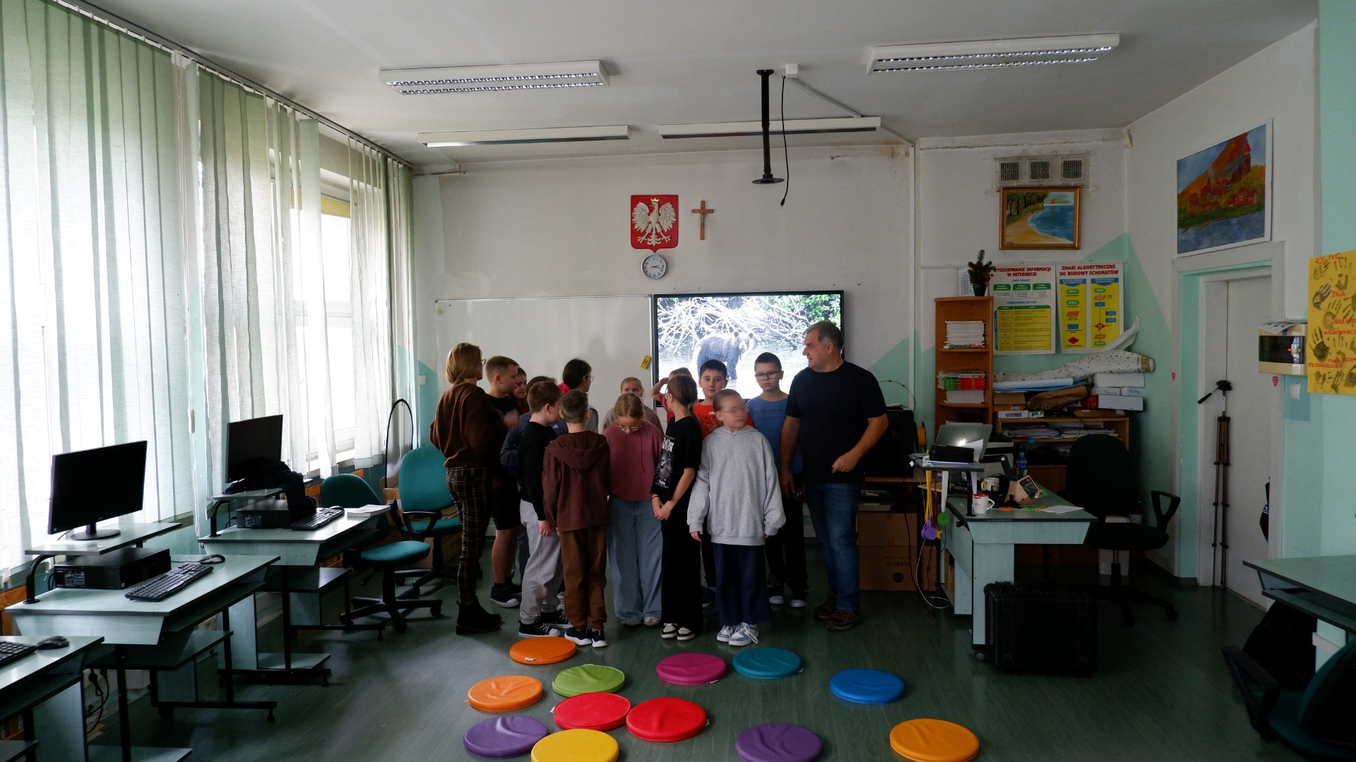 Spotkanie było pełne fascynujących opowieści o zwierzętach żyjących w polskich lasach. Pan Marcin w ciekawy i przystępny sposób dzielił się swoją wiedzą oraz wyjątkowymi historiami z pracy w terenie. Uczniowie z ogromnym zainteresowaniem słuchali prezentowanych ciekawostek, a także mieli możliwość zadawania pytań, dzięki czemu warsztaty stały się jeszcze bardziej angażujące.