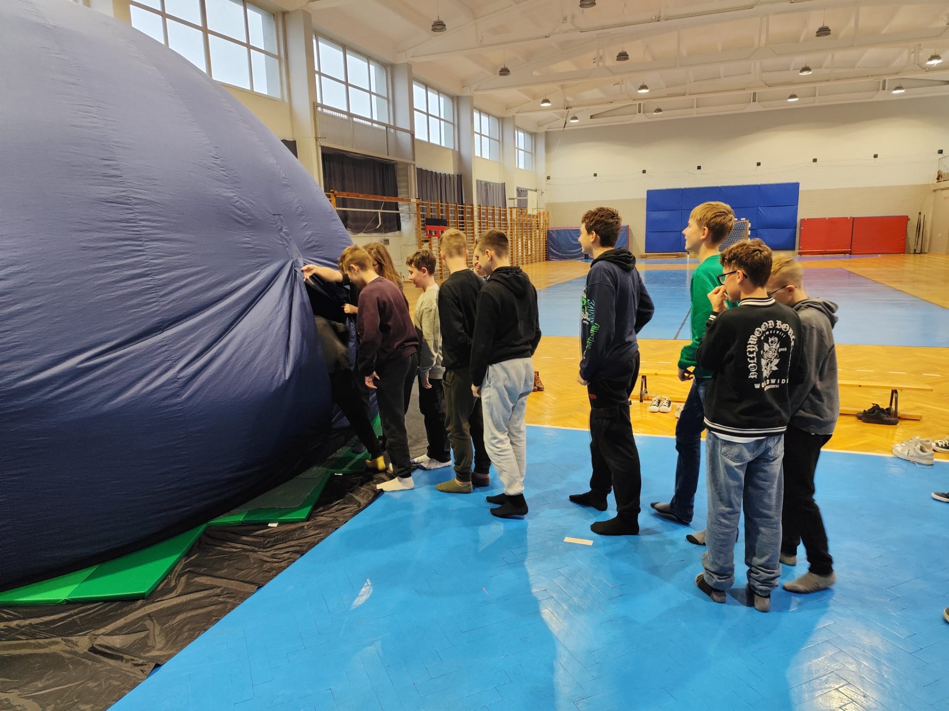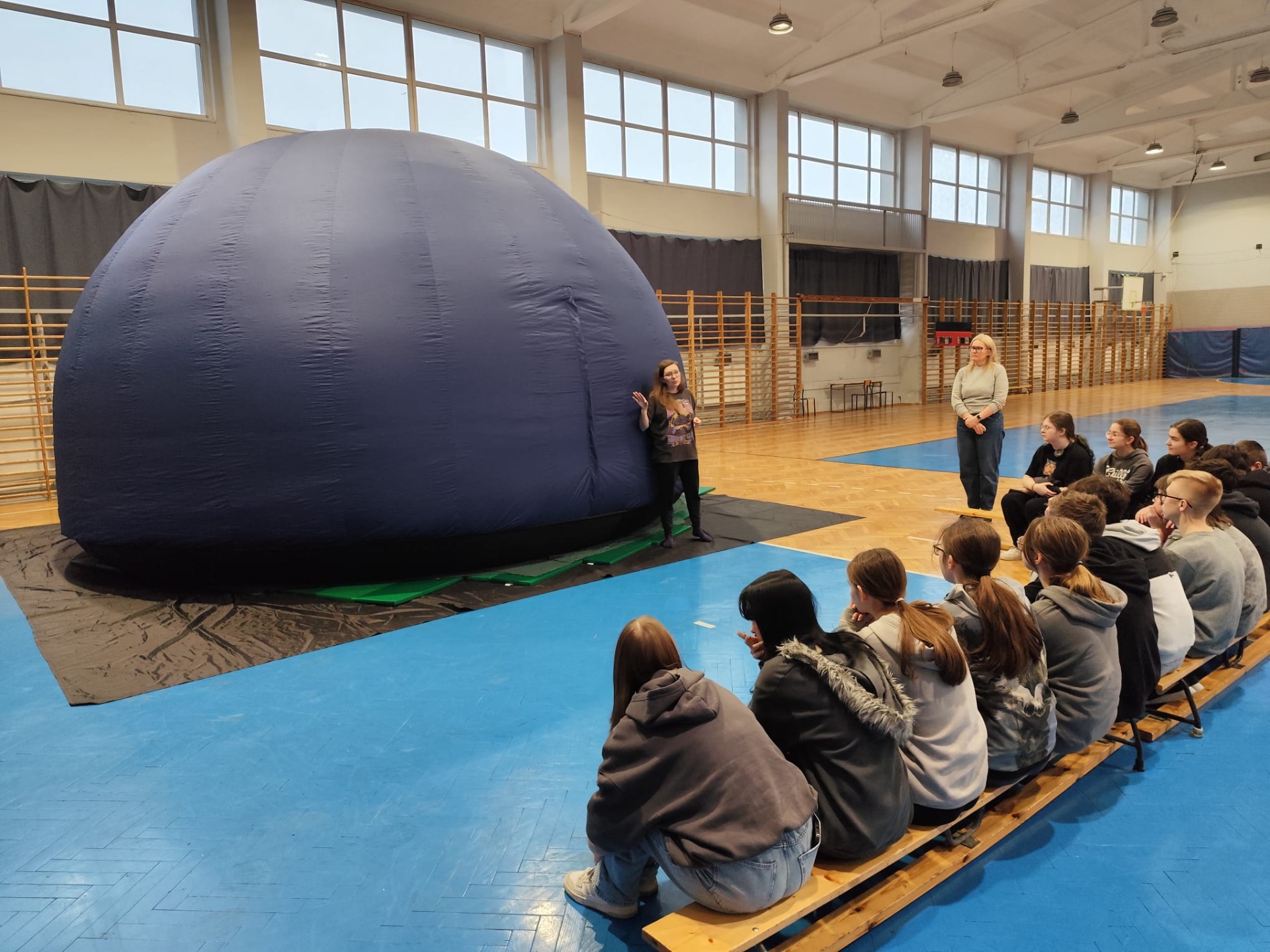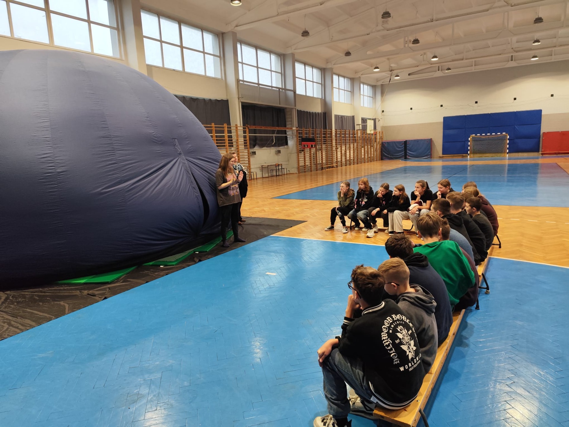 Przez cztery dni w naszej szkole gościło Mobilne Planetarium, które cieszyło się ogromnym zainteresowaniem wśród uczniów. W zajęciach wzięło udział ponad 20 klas, a każda z grup z wielkim zaciekawieniem odkrywała tajemnice wszechświata.